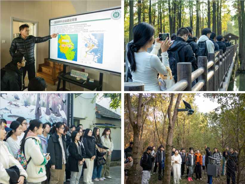 11月21日,我院《习近平生态文明思想的上海实践》专论课第五讲“坚持绿色发展是发展观的深刻革命”顺利开讲,2025级环境工程专业学生前往位于青浦区金泽镇的上海长三角城市湿地生态系统国家野外科学观测研究站,开展实地参观与学习活动。同学们近距离接触科研设施,聆听野外站站长牛富俊教授的讲解,深入了解湿地生态保护的前沿科研进展,进一步增强了理论与实践相结合的能力。