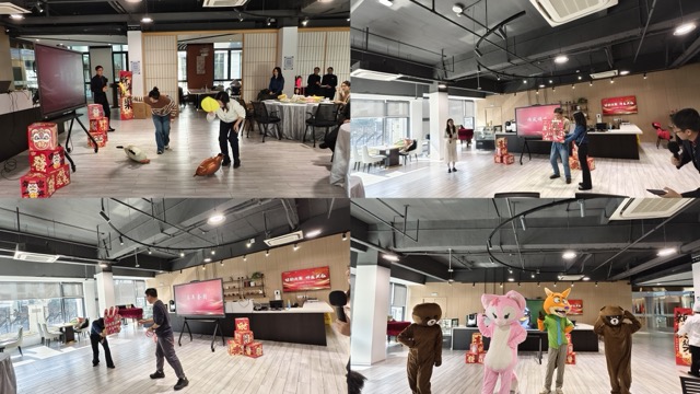 本次新年茶话会精心设置了多轮互动环节,让现场氛围持续升温。游戏环节妙趣横生,既有考验默契与协作的道具类游戏,也有充满趣味性的屏幕互动游戏,大家积极参与、各展所长,在轻松欢乐的氛围中增进了情谊。才艺展示环节堪称茶话会的一大亮点。四位神秘老师穿着卡通人偶服装,带来原创《马上巅峰》舞蹈表演,用活泼有趣的动作带领大家释放工作压力,将烦恼“原地格式化”,新颖的表演形式赢得全场阵阵掌声。三轮抽奖环节更是惊喜不断,随着幸运名单的逐一揭晓,欢呼声此起彼伏,为老师们送上了满满的新年好运。