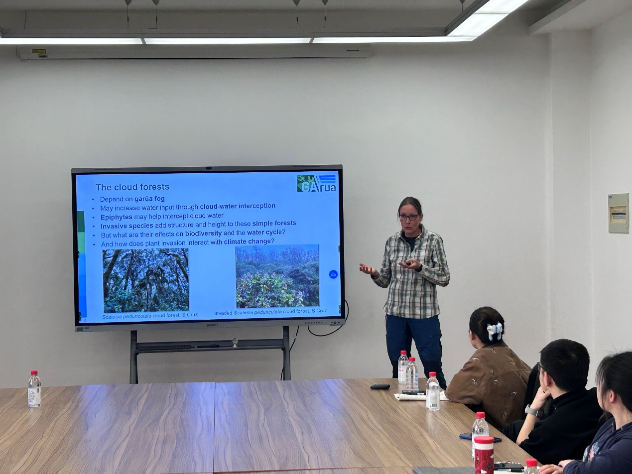 两场报告分别聚焦加拉帕戈斯群岛岛屿云雾林生态系统和苔藓植物保护,内容充实、视角新颖,拓展了师生们在植物生态、全球变化、生物多样性保护等方向的学术视野。报告结束后,两位专家与在场师生就附生植物生态功能、苔藓微生物互作机制、入侵物种治理策略等科学问题进行了深入互动,为后续研究提供了新的思路和合作可能。
