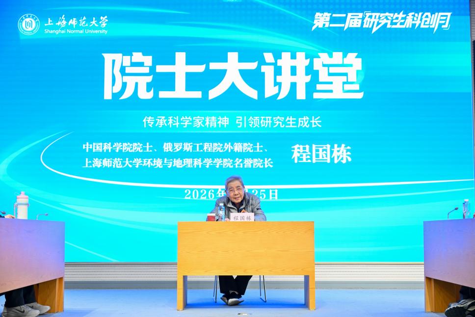 3月25日下午,我校第二届研究生科创月系列活动之院士大讲堂在徐汇校区商学院108室开讲。我院名誉院长程国栋院士应邀以“传承科学家精神,引领研究生成长”为题作讲座,院党委书记周新荣主持活动。