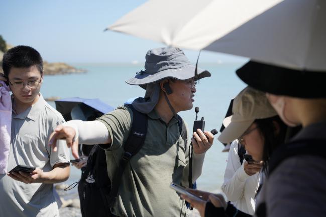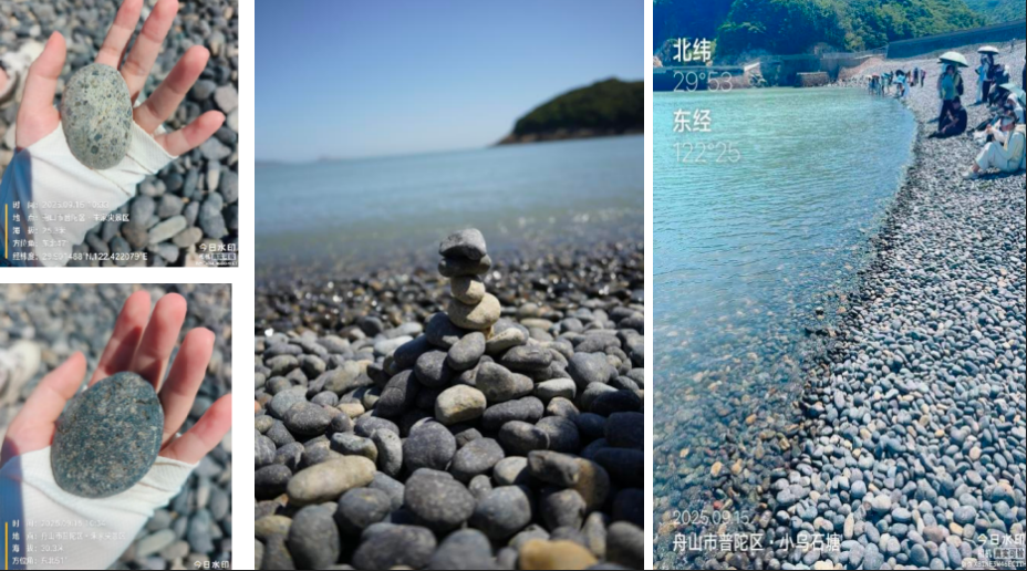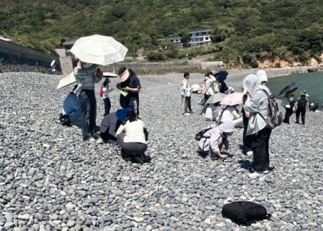 2025年9月15日,实习第二天,天高云阔,同学们踏入了浙江舟山朱家尖这片神奇的天地,开启了一场与海的对话,去探寻砾石滩、海蚀地貌与海岸沉积的故事。