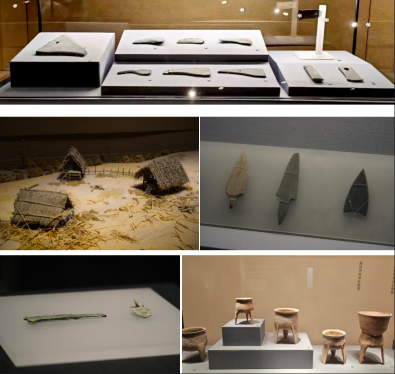 其农业生产高度发达,石镰、耘田器等配套石制工具的使用,让稻作生产如虎添翼;刀、凿、镞等小型青铜器的出现,彰显着工艺的进步;陶器制作纹饰丰富,承载着先民的审美与智慧;居住形式多为干栏式结构,巧妙适应环境;饮食上,用鼎煮食,用甗(yǎn)蒸食,食用海鲜较为普遍,鸭形壶更是其特有的器形,这些细节勾勒出一幅生动的马桥文化生活图景。