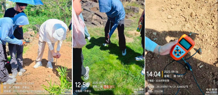 许家山村是一个具有悠久历史的古村落。下午,同学们到达许家山村,使用便携式气象站、土壤紧实度仪器、土壤水分盐分温度计、叶绿素仪、叶面积仪和光合作用测定仪等仪器,对该村的气象条件、土壤质量和植被生长状况等进行了测量和分析,积极思考古村落的传承、振兴与发展问题。