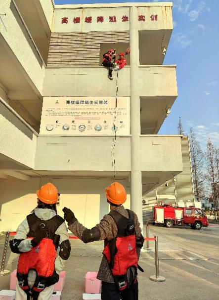 在实训体验活动环节,学院师生共同学习了应急绳结的打结方法与实用场景应用,快速掌握了多种应急绳结技巧;在高楼缓降逃生实训区,基地培训人员详细讲解了缓降设备的工作原理、操作流程及安全注意事项,师生代表依次穿戴防护装备,在模拟高楼环境中完成缓降逃生实操,直观感受突发情况下的应急处置流程。